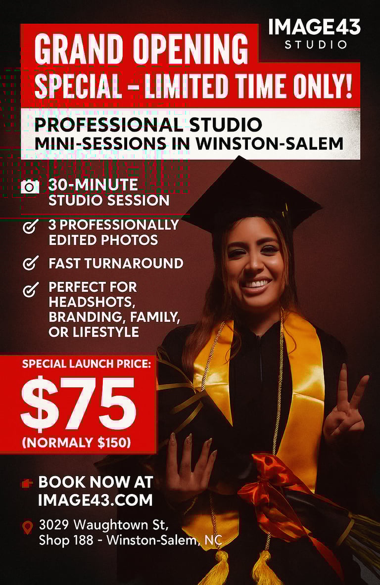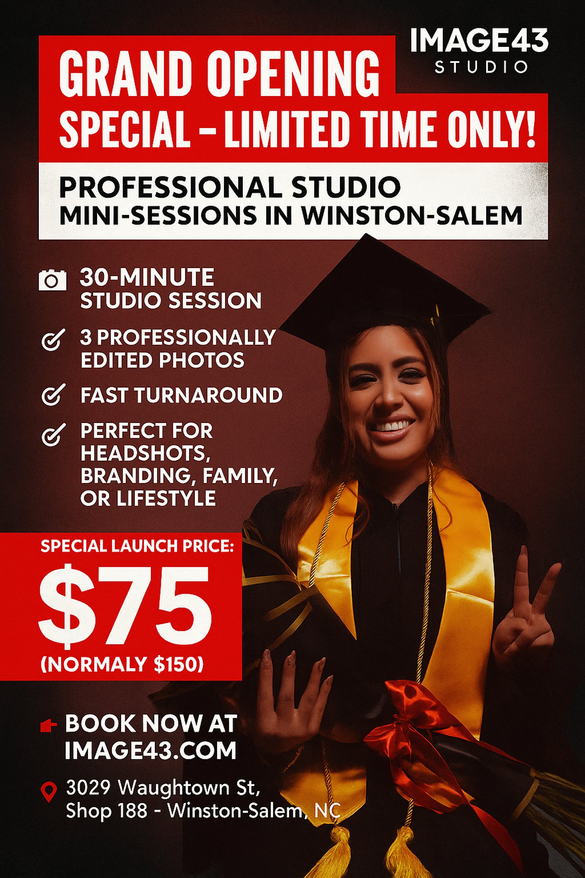 Step into the creative zone at Image43 and bring your vision to life! To celebrate our grand opening, we’re offering a limited-time special